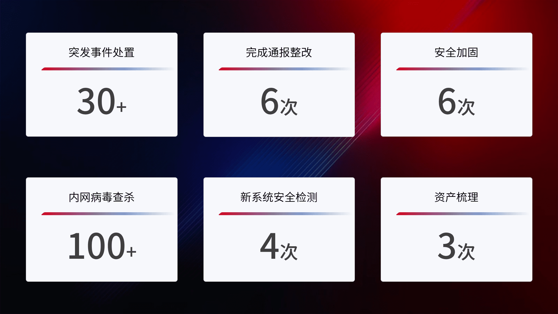 网络安全加固与风险管理:通过技术加固手段,,,如加强区域隔离,,,,缩减攻击内网横向移动的范围;优化现有网络安全管理制度,,降低网络威胁暴露面,,减少被黑客攻击的可能性。。